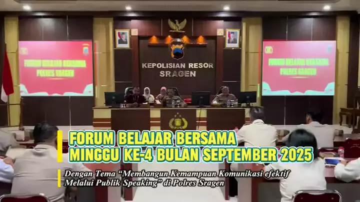 KEGIATAN FORUM BELAJAR BERSAMA MINGGU KE-4 BUKAN SEPTEMBER 2025 DENGAN TEMA "MEMBANGUN KEMAMPUAN KOMUNIKASI EFEKTIF MELALUI PUBLIK SPEAKING" DI POLRES SRAGEN