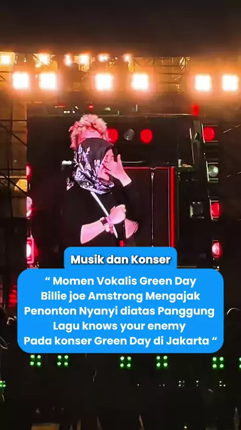 “ Momen Vokalis Green Day Billie joe Amstrong Mengajak Penonton Nyanyi diatas Panggung Lagu knows your enemy Pada konser Green Day di Jakarta “ . @Green Day @Ravel Entertainment . #greenday #greendayindonesia #greendayjakarta #greendayfans #greendayjakarta2025