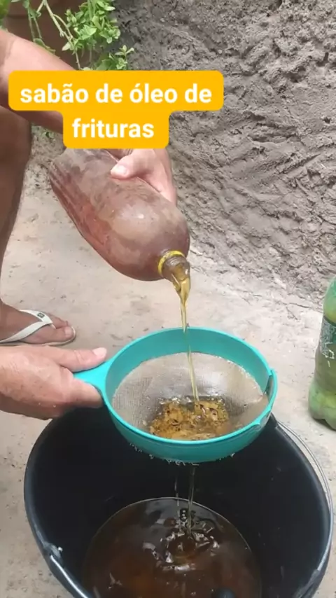 ingredientes: 1 litro de água fervida 5 litros de óleo 1 kg de soda 1 detergente 1 copo de sabão em pó #reciclando #Receita