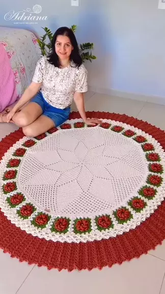 Grande, elegante e cheio de detalhes, ele foi feito ponto a ponto para transformar qualquer ambiente em um lugar ainda mais especial. O destaque das flores e o acabamento perfeito fazem dessa peça um verdadeiro encanto. Quem também se apaixonou por esse tapete? 😍 Deixe um ❤️ e marque alguém que teria um desses em casa! 📩 Encomendas abertas 🧶 Feito à mão com amor ✨ Peça exclusiva e sob medida #tapetedecroche #croche #crochebrasil #crocheira #artesanato