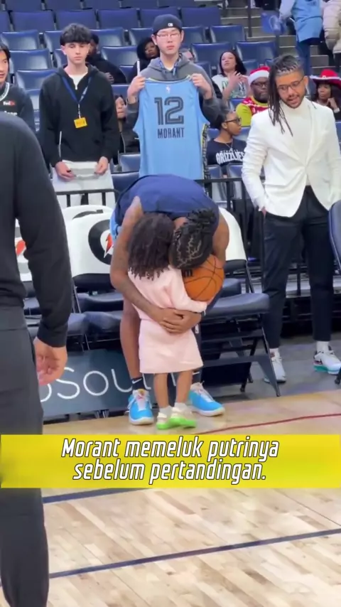 Harapan terbaik bayi! Morant memeluk putrinya sebelum pertandingan.
