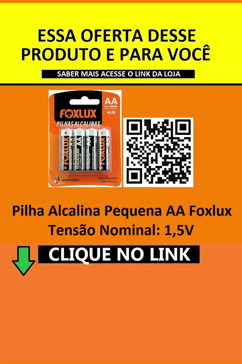 #Pilha Alcalina Pequena AA Foxlux – Tensão Nominal 1,5V – Embalagem com 4