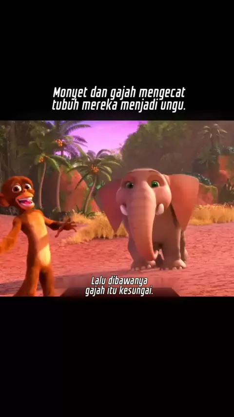 Monyet dan gajah mengecat tubuh mereka menjadi ungu.