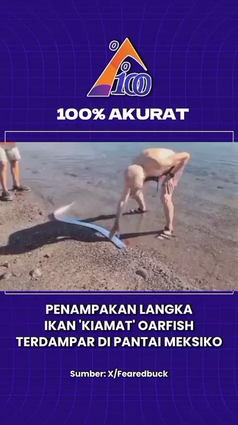 Pengunjung pantai di Kepulauan Canary, dihebohkan dengan seekor oarfish atau ikan dari laut dalam langka, yang dianggap sebagai "ikan kiamat", terdampar di pantai. Ikan ini pertama kali ditemukan oleh pengunjung, tepatnya di Lanzarote pada 10 Februari 2025 lalu. Ikan berbentuk pita panjang ini biasanya menghuni zona mesopelagik, yaitu zona laut yang hanya mendapatkan sejumlah kecil penerangan sinar matahari. #fyp #viral #ikan #oarfish #akuratco