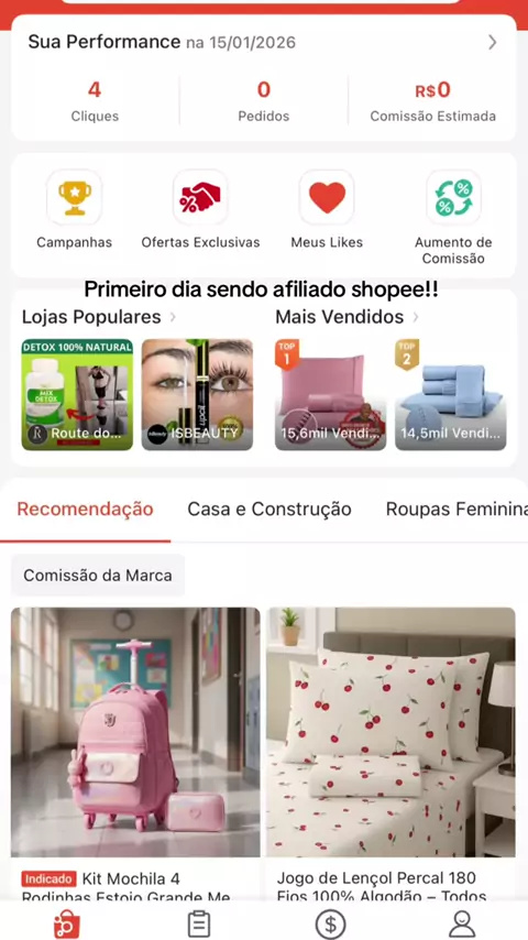 Primeiro dia sendo afiliado shopee, todos os dias irei postar print de como está sendo um afiliado shopee!! #Shop #compras #rápido #SHOPEE