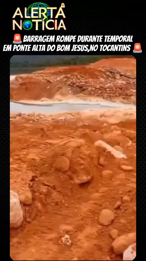 🚨Barragem no rio Ribeirão se rompeu🚨 Na manhã desta sexta-feira (19) em Ponte Alta do Bom Jesus, no sudeste do Tocantins. Imagens que circulam nas redes sociais mostram a água lamacenta alcançando a copa de árvores e seguindo pelo curso do rio após o colapso da estrutura. Até o momento, não há informações oficiais sobre vítimas ou danos materiais confirmados pelas autoridades. #Notícia #acidente