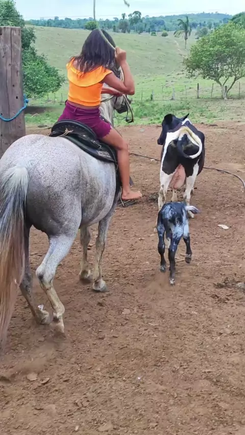 gente a égua passou por cima do bezerrinho 😂😂 #cavalo #topz #vacas
