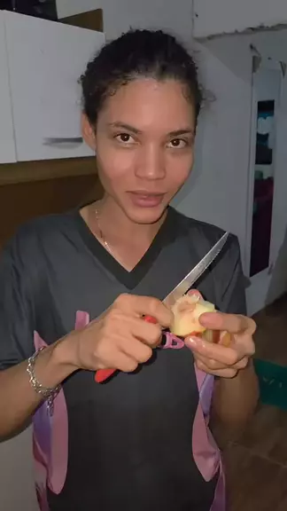 provando kiwi e pêssego
