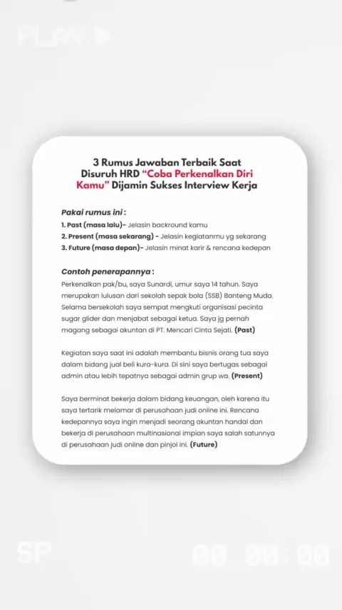 nih ini dia tips cara memperkenalkan diri yg baik dan benar pada saat interview kerja saat disuruh "coba perkenalkan diri kamu" sama HRD. kalau openingnya buat perkenalan kayak gini sih yakin banget bakal lolos interview/wawancara kerja sih. yuk cek aja video-nya#tipsinterviewkerja#tipswawancarakerja#interviewhr#interviewhrd#wawancarahrd#interviewkerja#wawancarakerja#tipshrd#freshgraduate#tipsfreshgraduate#tipsketerimakerja#diterimakerja#keterimakerja#hrdindonesia#lolosinterview#strategilolosin...