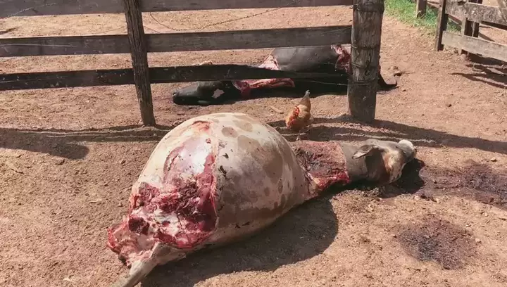 fazenda foi invadida e gado morto e esquartejado, em Bela vista em Goiás
