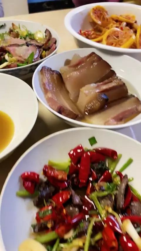 Hari ini, saya datang ke rumah ayah mertua saya untuk makan bacon dan daging sapi asap. Saya dekat dengan rumah istri saya. Bacon dari rumah ayah mertua saya sudah diasapi. Keluarga kami belum mulai merokok. # Homemade bacon # gourmet sharing