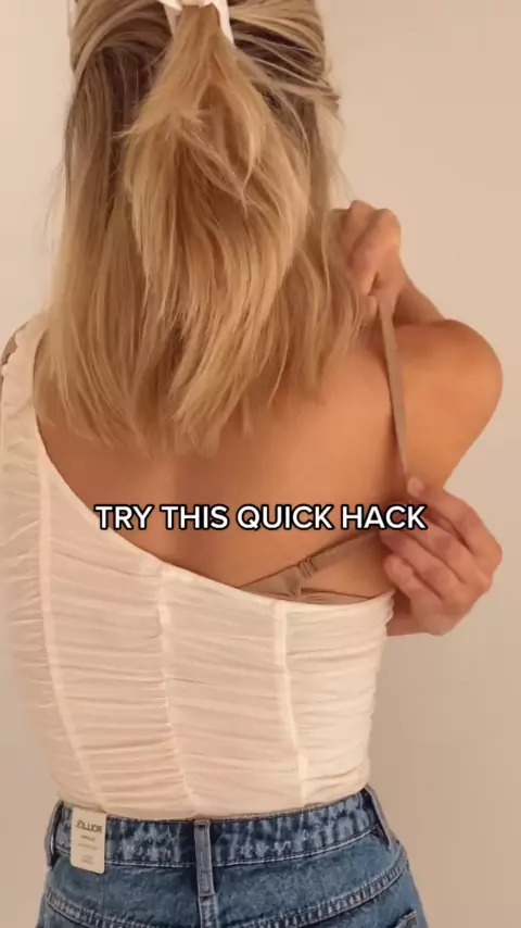 Se o seu sutiã não tem alças removíveis, experimente este # brahack # straplessbra # oneshouldertop # lifehacksfortheladies # straplessbrahacks # brahacks