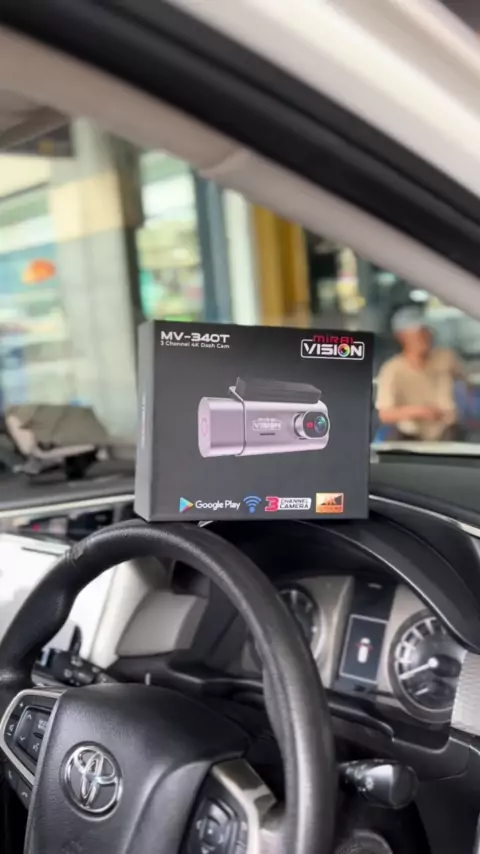 NEW DASHCAM 3 KAMERA MIRAI MV-340T Spec : - Pixel : 600W + 200W + 200W - Camera Angle : 170° - LCD Screen : 3.69” IPS touch - External Memory : TF Card up to 128GB - Image Format/Loop Recording Format: JPG/ts - Camera : 3 Way - Video format : H.264 - Input Power : 5V=2500mA - Video Size : 3K+1080P+1080P - Current frequency : 50Hz/60Hz#dashcam#mirai#cameracar