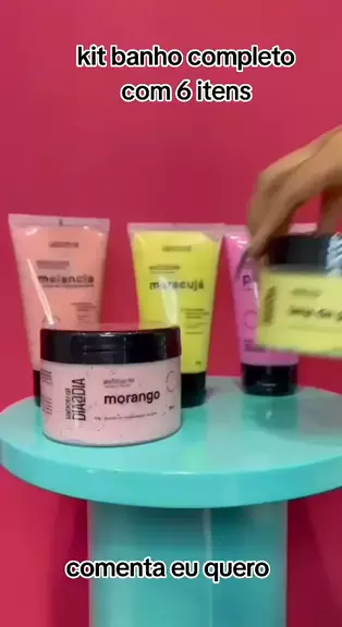 Kit banho completo com 6 itens. 1 hidratante, 2 esfoliante, 1 sais de banho, 1 sabonete e 1 esponja. comenta eu quero. #Shopee #banho #kit