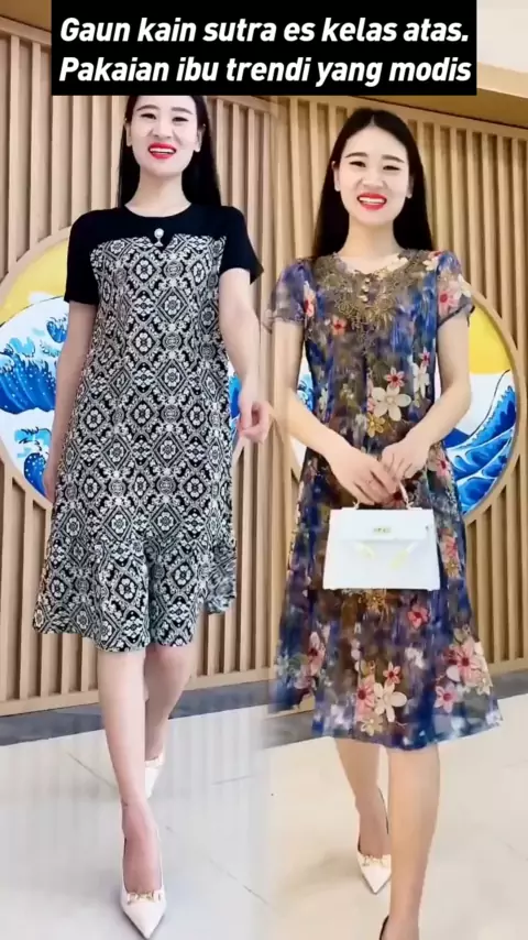 Gaun kain sutra es kelas atas. Pakaian ibu trendi yang modis