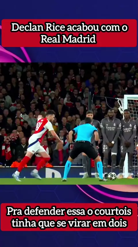 que cobrança de falta bem batida de Declan Rice #diadofutebol #realmadrid #ARSENAL #championsleague #goldefalta