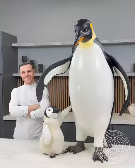 Esta criação marca minha última escultura de chocolate do ano, e é uma que eu sonhava em fazer há muito tempo: um pinguim-imperador em tamanho real com seu filhote, esculpido inteiramente em chocolate. Eu queria capturar a ternura e o vínculo entre pais e filhos, e adorei especialmente o resultado do filhote. Parece a maneira perfeita de encerrar o ano: corações aquecidos em um mundo frio. Obrigada por compartilharem essa doce jornada comigo. #AmauryGuichon #chocolate #culinaria #viral