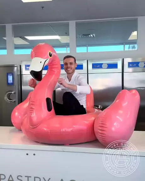 This life sized inflatable Flamingo is crafted out of 100% dark chocolate! It took 5 days of works and weighs 155lbs! I love the wrinkling effect and the valve! It's the perfect Summer Snack! What do you guys think? #amauryguichon #chocolate #summer