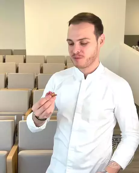 Esta criação romântica começa com uma delicada esponja joconde rosa, amorosamente encharcada em um xarope de champanhe de morango e rosa. Camadas com uma vibrante compota de morango e um cremeux de morango seda, cada mordida é um sussurro de romance. Envolta em uma geleia de champanhe rosa faísca com flocos dourados rosa e coroada com uma camada crocante de chocolate rubi, esta sobremesa transcende o comum. E o toque enc#CulinaryJoy antador final, a cortiça-um pirulito brincalhão de morango e li