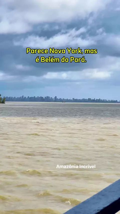 A cidade de Belém e seus prédios às margens da Baía do Guajará em um dia nublado 💚