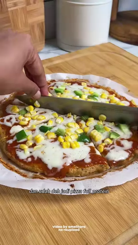 Pizza No Tepung Full Protein! Estimasi kalori utk 1 Loyang, dapet 8 slice jadi kurang lebih kalorinya 140kkal perslice Bahan: 300g dada ayam 2.5 sdm dry rub @healthyrepublic 2 telur 30g mozzarella Pizza sauce tapi aku pake Bolognese aja Topping 70g mozzarella Paprika & jagung sesuai selera #resepsehat #pizza #menusehat #menudiet