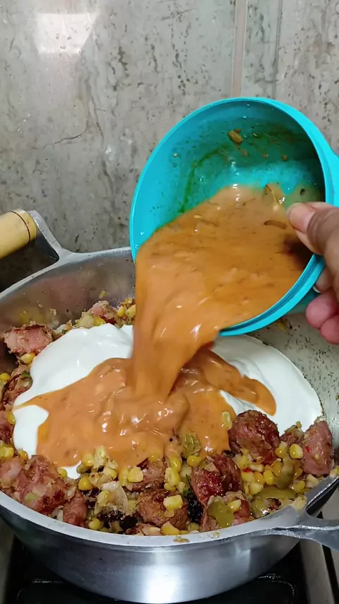 Estrogonofe de linguiça que churrasco bem cremoso #receita #culinária #chefdecozinha #estrogonofe #refeição
