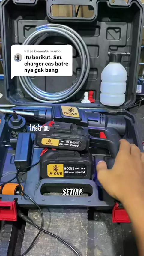 Membalas @wanto alat cuci motor tenaga baterai dari k one ini sudah lengkap dengan chargernya ya kak ,kalau batre habis bisa di cas #jetsteam #jetcleaner #alatcucimotor #alatcucimotorportable #alatsemprotportable #cucimotor #lebaranekstrasale