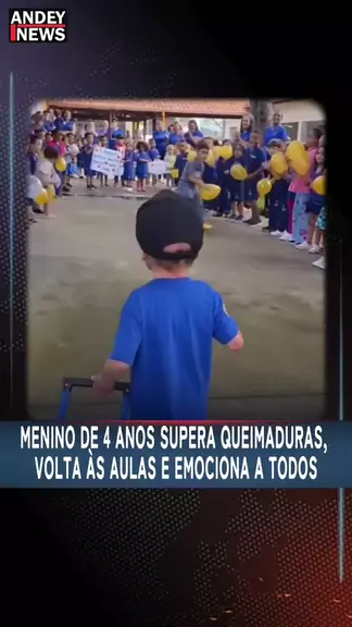 Criança que sofreu queimadura em 40% do corpo é recebida com festa na escola. #news #viral #viralreels #andeynews