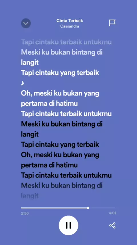 Cinta Terbaik - Cassandra #cassandra #cintaterbaik #fulllirik #spotify #spotifylyrics #4u #liriklagu #andnwn #meskikubukanyangpertama #cintakuterbaik