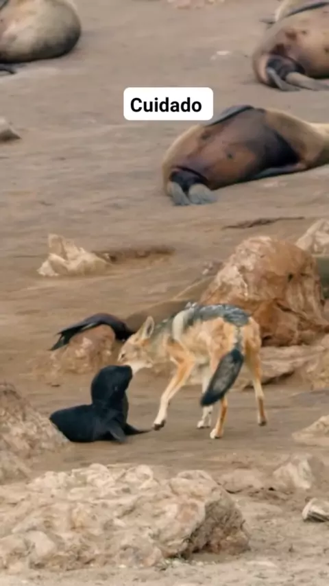 Raposa tenta pega filhote de Leão marinho #animais #selvagem #AnimaisFamília #vidaanimal #mundoanimal