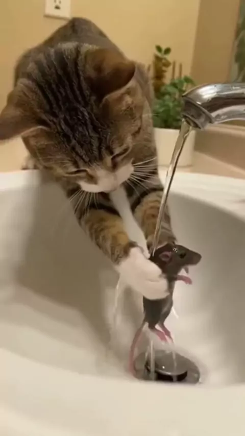 Gato lavando rato e pendurando no varal! 🐱🧼🐭 Não perca essa cena hilária! #GatoEngraçado #RatoNoVaral #HumorAnim