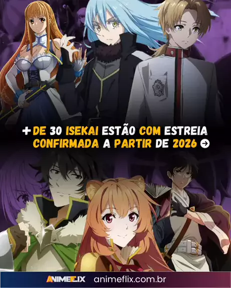 🌍 Mais de 30 animes isekai já estão com estreia confirmada a partir de 2026, mostrando que o gênero continua sendo um dos mais populares entre os fãs. Novas adaptações, continuações aguardadas e histórias inéditas prometem dominar o calendário dos próximos anos. 💭 Qual desses lançamentos você mais espera ver na tela? 📲 Siga @animeflixbr e acesse animeflix.com.br para mais notícias sobre animes! #anime #isekai #animes