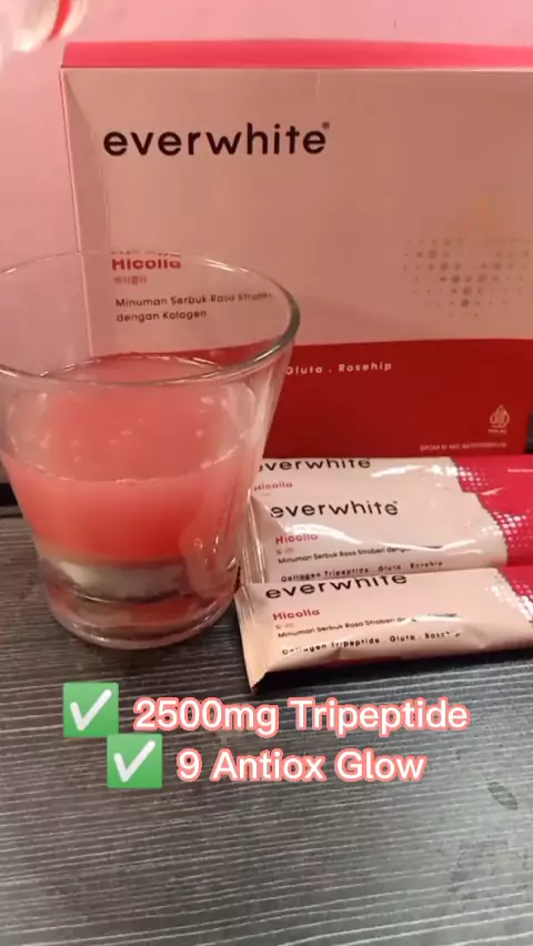 EVERWHITE HICOLLA ini minuman serbuk rasa strawberry dengan collagen yang mengandung 2500mg tripeptide, 9 antiox glow , gluta, rosehip. Yang bagus banget untuk membantu membuat kulit tampak glowing dan sehat @everwhite.id @Everwhite.id #CollaGank #everwhitehicolla