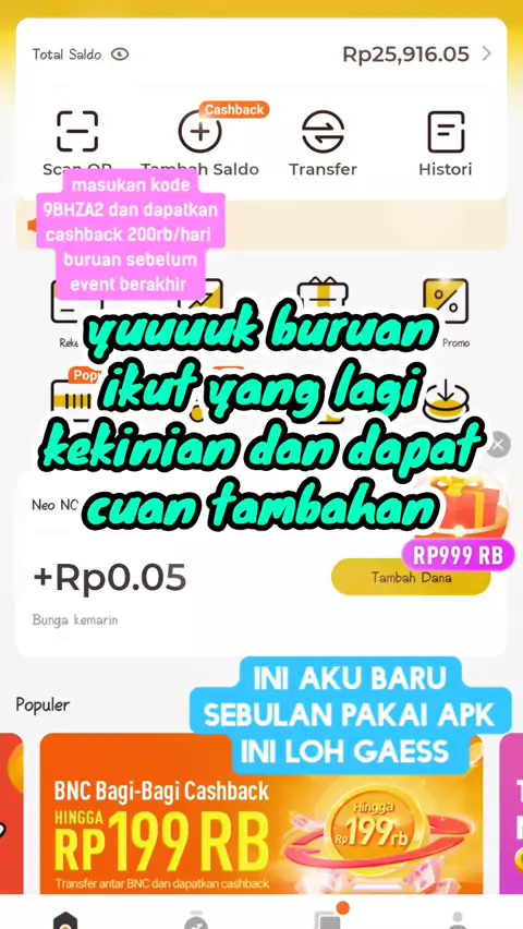 yuuuuuuk gabung di apk ini terbukti penghasil cuan tercepat yang pernah ada di hpku loh, dan masukan kode 9BHZA2 biar dapat tambahan saldo 200rb/hari #KegiatanSahabat #fyp #apk #NEO #cuan