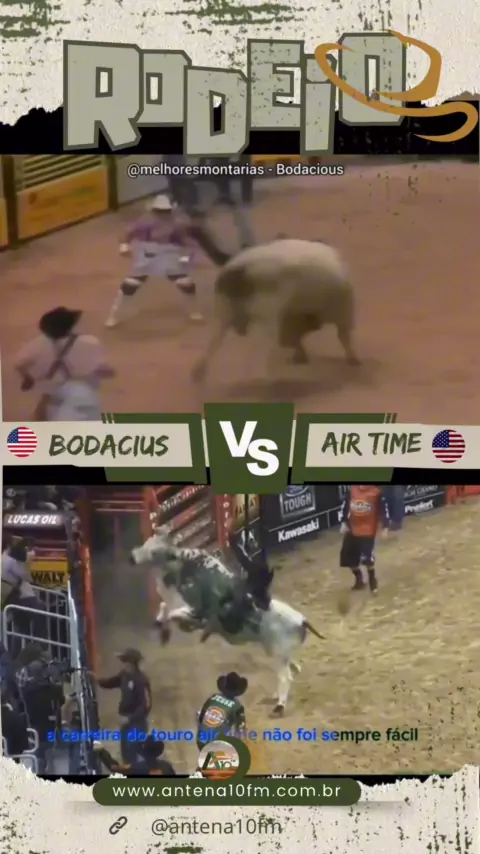 BODACIOUS- UM DOS TOUROS NORTE-AMERICANOS DE RODEIO MAIS VIOLENTO, CONHECIDO POR SEU "PULO CARRIOLA" QUE CAUSAU FERIMENTOS GRAVES NOS COWBOYS X AIR TIME UNS DOS MELHORES TOURO DA PBR. HOJE AMBOS JA FORAM APOSENTADOS SAO LEMBRADOS COMO MAIORES TOUROS DOS CAMPEONATOS PBR. #antena10fm #amaissertaneja #rodeio #bodacius #airtime @Johanderson botto