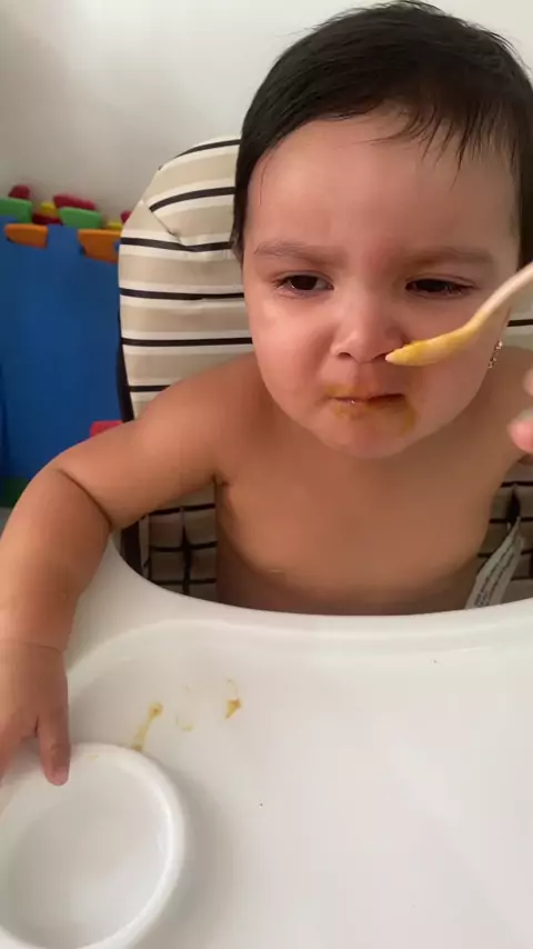 Almoço dela hoje , papinha de verdura e feijão com arroz e carne #olhaebaba