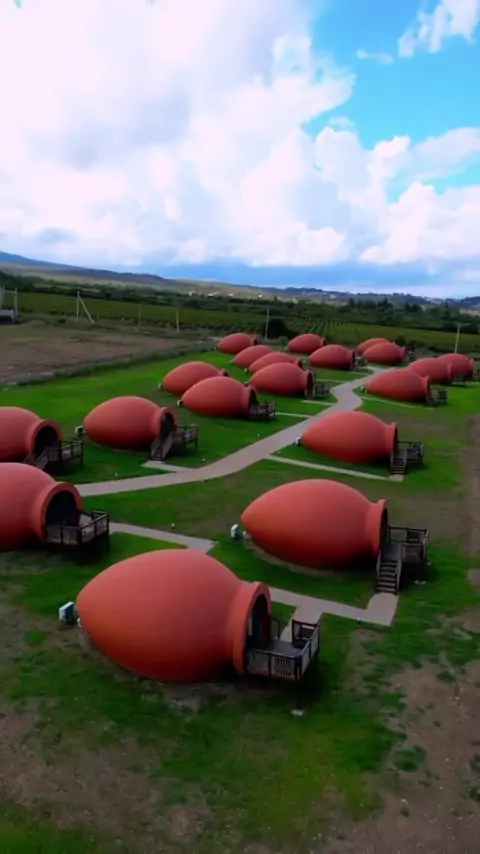 Hotel em forma de vasilhame para fazer vinho. O Qvevrebi Hotel oferece quartos incomuns em forma de qvevri. Cidade de Telavi, Geórgia 🇬🇪 ✨ #naturezaperfeita #paraiso #lugares