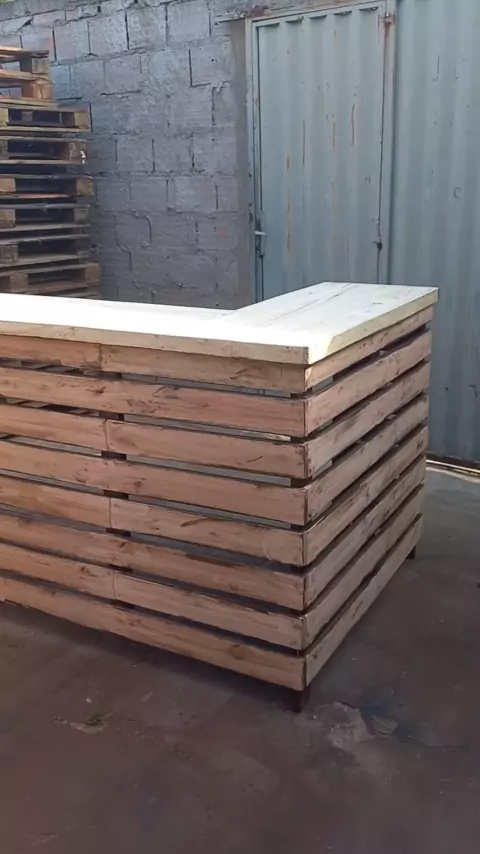 Balcão quase pronto. Acesso ao curso gratuito de móveis de pallets no ícone do YouTube