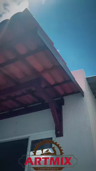 Coberta para janela com mão francesa + telhas colonial de 1ª. #garagem #coberta #madeira #obra #carpintaria