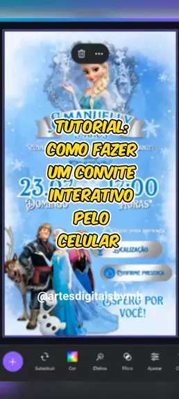 Aprenda a fazer um convite interativo no tema Frozen pelo celular ❄️ #tutorial #tutorialcanva #convitedigital #Convite #artepelocelular
