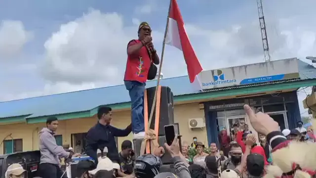 aksi unjuk rasa depan kantor PT.teakaltim plantation
