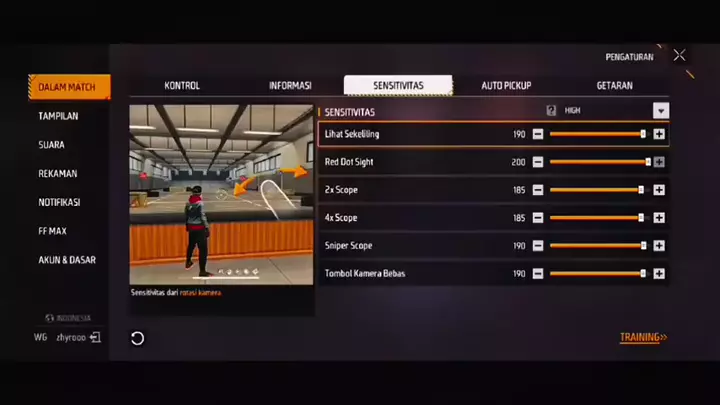 sensivitas ya ada 2,kita pakek yang ke 2 guysss #MabarSnack #FREEFIREE