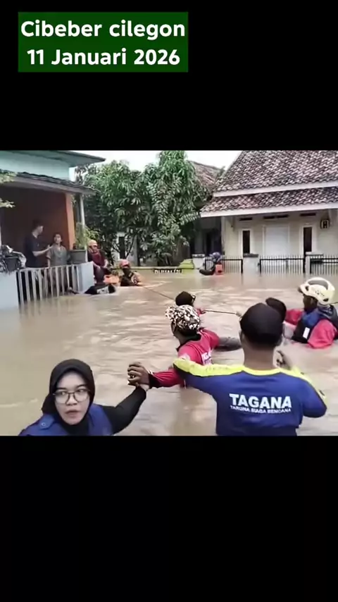 Banjir besar melanda Kecamatan Cibeber, Kota Cilegon, Banten, pada Minggu, 11 Januari 2026, setelah wilayah tersebut diguyur hujan deras tanpa henti. Penyebab dan Dampak Utama: Penyebab: Banjir terjadi akibat jebolnya tanggul Kali Cibereko di Lingkungan Sambirata dan luapan air sungai yang tidak dapat ditampung karena debit air yang terlalu besar. Dampak: Sedikitnya 450 kepala keluarga (KK) terdampak di Lingkungan Sambirata, Kelurahan Cibeber, dengan ketinggian air mencapai nyaris setinggi dad...