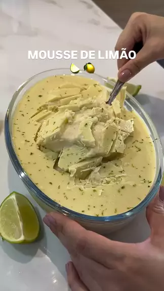 MOUSSE DE LIMÃO COM CASQUINHA DE CHOCOLATE BRANCO 🍫✨ A combinação perfeita entre o azedinho do limão e o docinho do chocolate — simplesmente irresistível 😍 🧁 Mousse: • 2 caixinhas de leite condensado • 2 caixinhas de creme de leite • 4 colheres (sopa) de leite em pó • 100 ml de suco de limão ➡️ Bata tudo no liquidificador por uns 3 minutinhos, até ficar bem cremoso! 🍫 Casquinha: • 200 g de chocolate branco Derreta de 30 em 30 segundos no micro-ondas, despeje na travessa e leve à gel