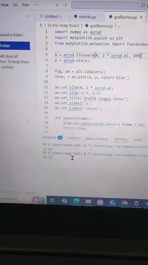 grafik fungsi sinus with python #TKJ SMK TI Pembangunan