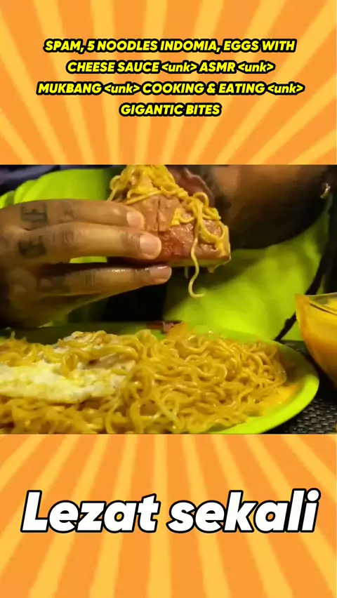 SPAM, 5 INDOMIE NOODLES, EGGS WITH CHEESE SAUCE | ASMR | MUKBANG | COOKING & EATING | GIGANTIC BITES