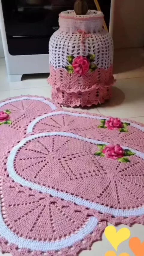 jogo de cozinha perfeito 😍❤️ #croche #jogodecozinhacroche #crocheting #amocrochetar