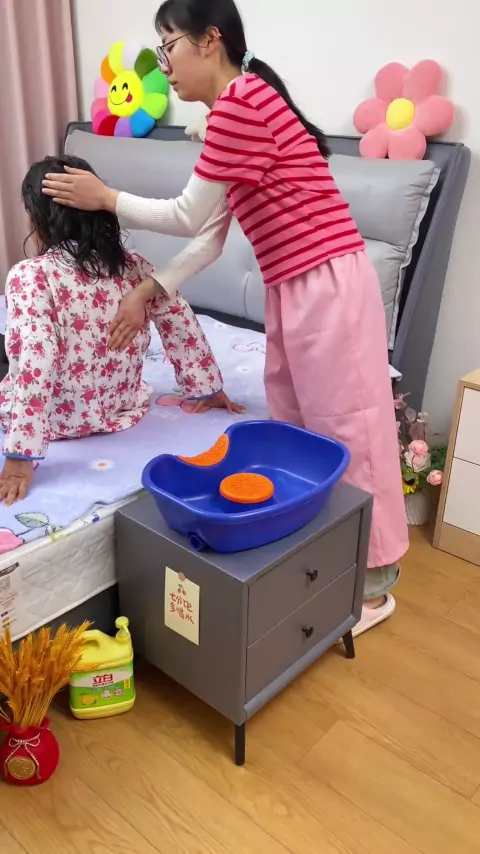 A família deve preparar uma bacia de xampu plana, para crianças, mulheres grávidas, xampu de pessoa doente é muito conveniente.