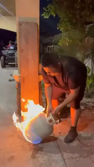 pegadinha do bujão de gás pegando fogo.