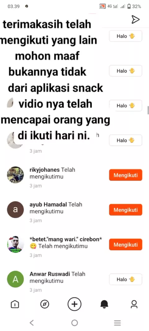 terimakasih telah di mengikuti saya tapi maaf ya bukannya tidak mau folback yang lain hari yang akan datang di folback lagi.soalnya dari aplikasi snack video nya telah mencapai mengikuti hari ni mohon maaf ya hari akan datang di folback kembali🙂🙏 #makasih #follower #salingfollow #salingbantu